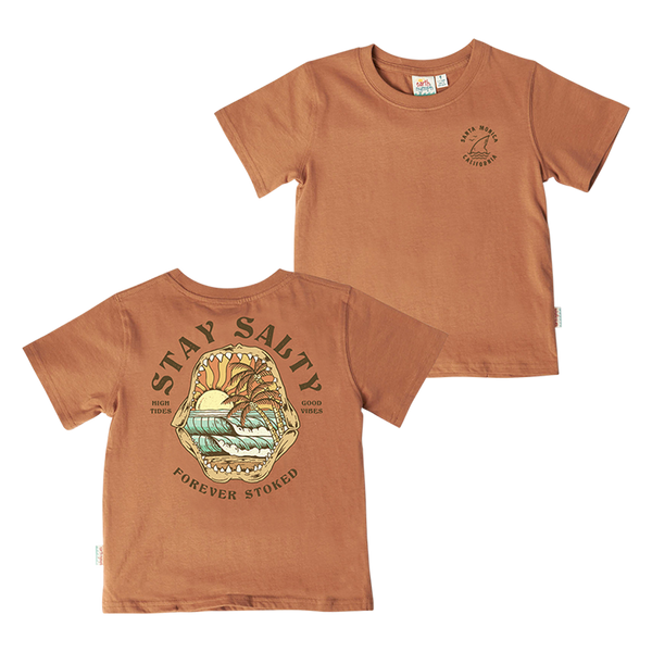 Earth Nymph Shark Good Vibes Blue Kids Tee $24.95