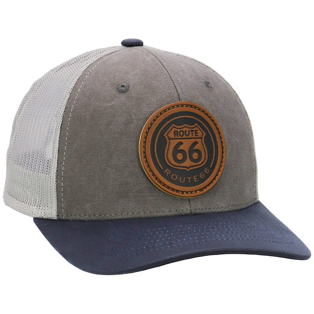 Route 66 Canvas Vegan Oiled Leather Trucker Hat - Charcoal/Navy/Gray