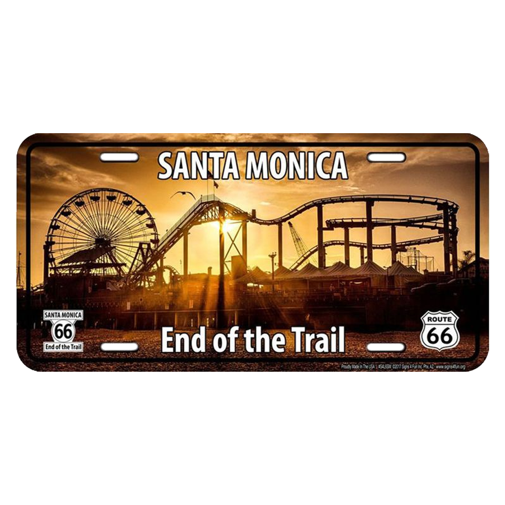 66 End - Santa Monica Pier - Rev up your ride with our unique license plates—where personality meets the pavement! Each sign is crafted with care and high-quality materials, ensuring they're as durable as they are delightful. These American-made license plates are sure to ignite conversations and reflect your unique flair. Plus, you can proudly say, “Made in the USA!” with every sign! Category: Route 66