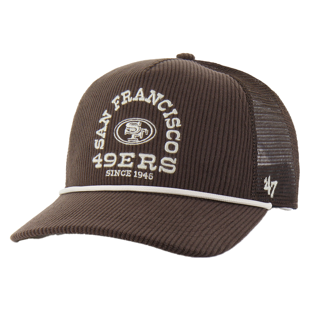 The '47 HITCH RF (relaxed fit) is an unstructured version of our popular ’47 HITCH style. A curved adjustable with half raised embroidery on the front, braided rope visor and a plastic snapback closure. Made from corduroy & hard mesh.