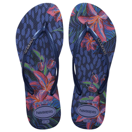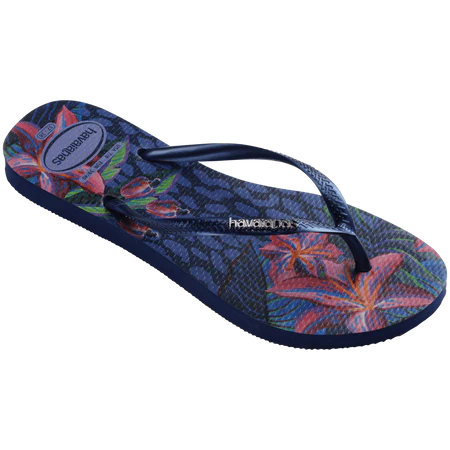 The Havaianas Slim Animal Floral Fusion flip flops bring all the comfort of Havaianas with a floral print like you've never seen before. A slim model, this sandal comes with a thinner sole and metallic straps with the Havaianas logo highlighted on them. The sole features a pattern of floral motifs in a beautiful and unique color palette. Pick the one that's right for you.