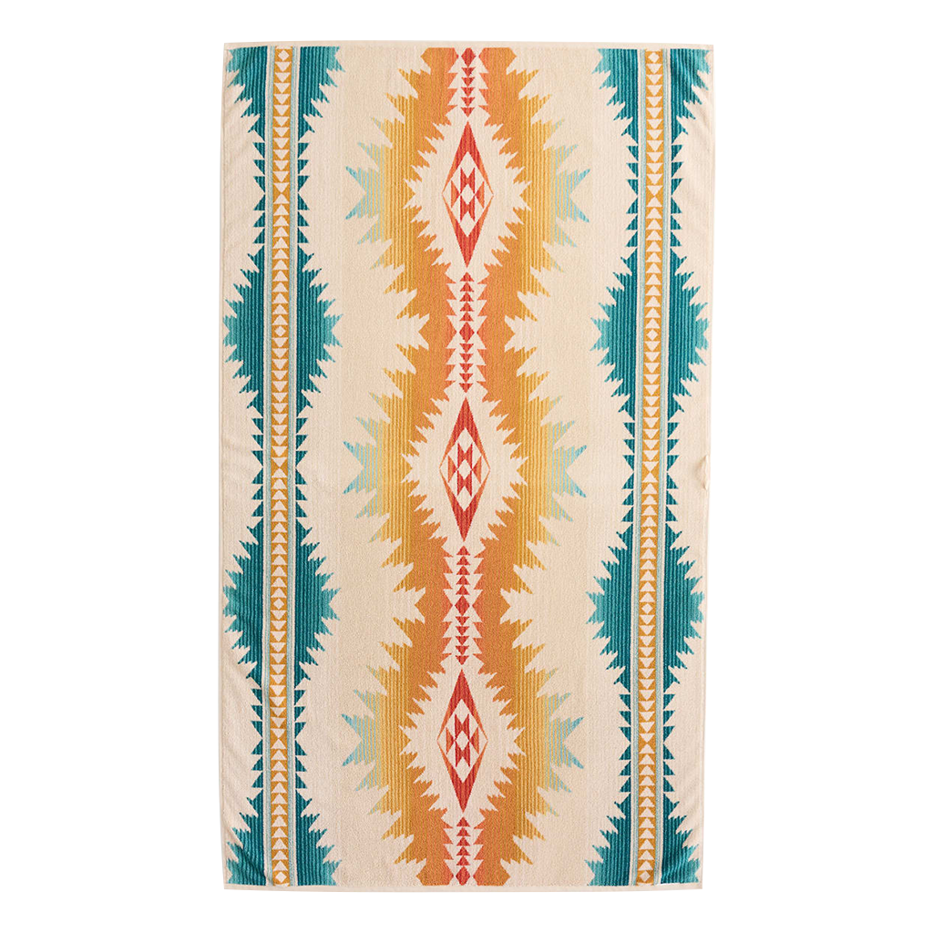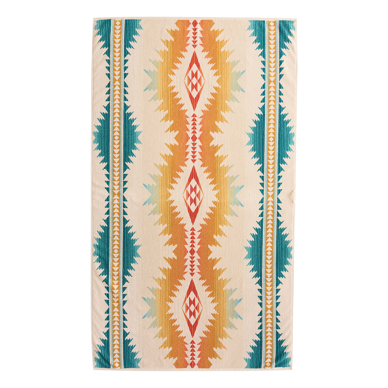 Supersized towel woven of plush cotton velour in vivid colors that stay true, wash after wash. Sheared on one side for softness, looped on the other for superior absorption. A luxury you'll love for the beach, hot tub or pool.