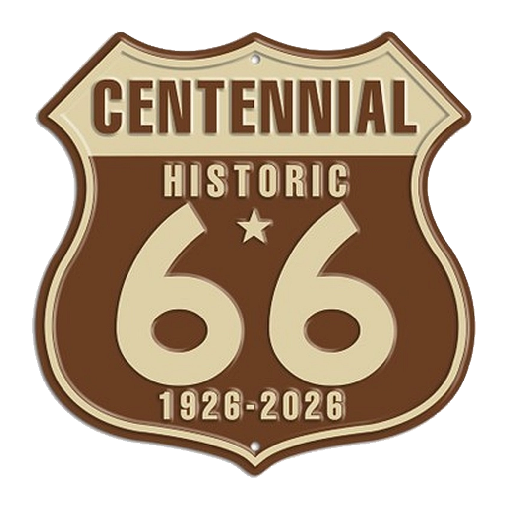 Celebrate 100 years of adventure! Brown and Tan Mini shield. Celebrate the spirit of adventure, perfect for the garage, home, office, and shop. Ideal for enthusiasts and collectors alike. Category: Route 66, Centennial