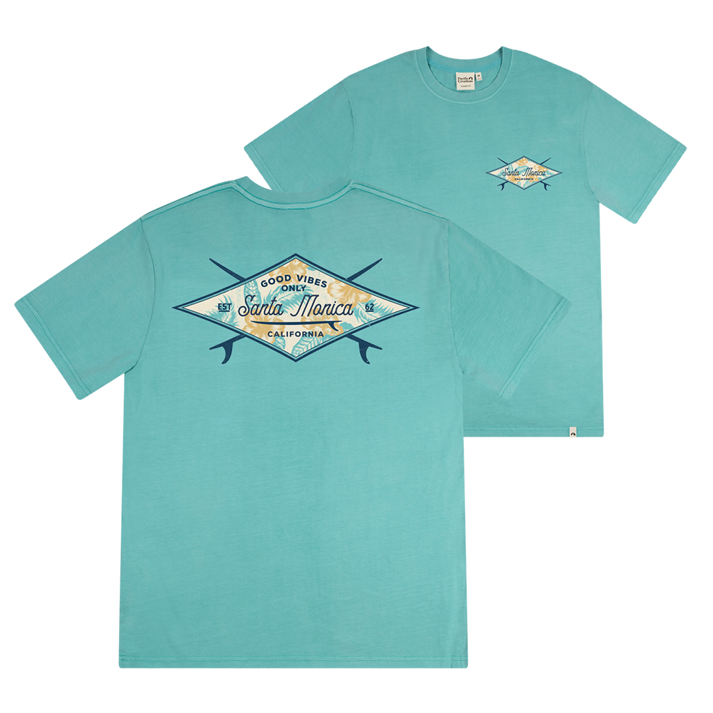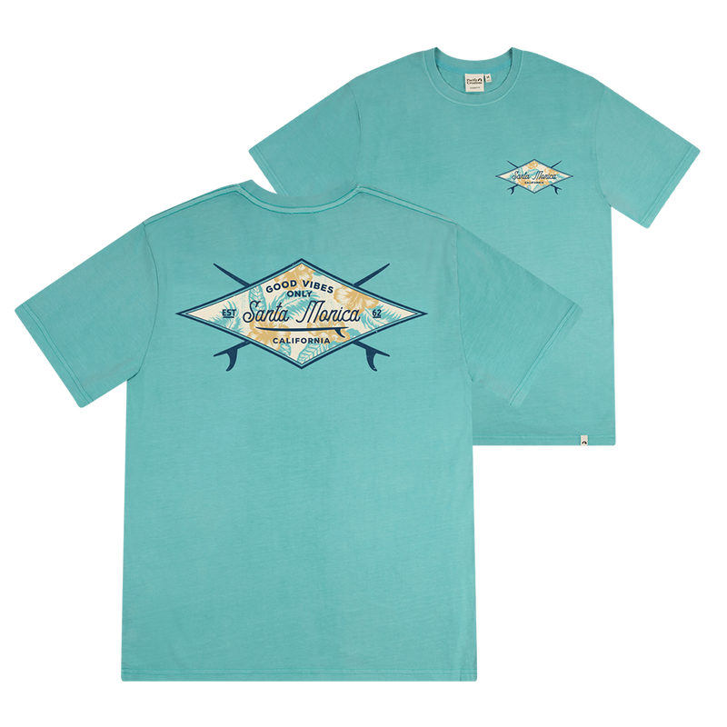 Santa Monica California Retro Badge Tee - Turquoise