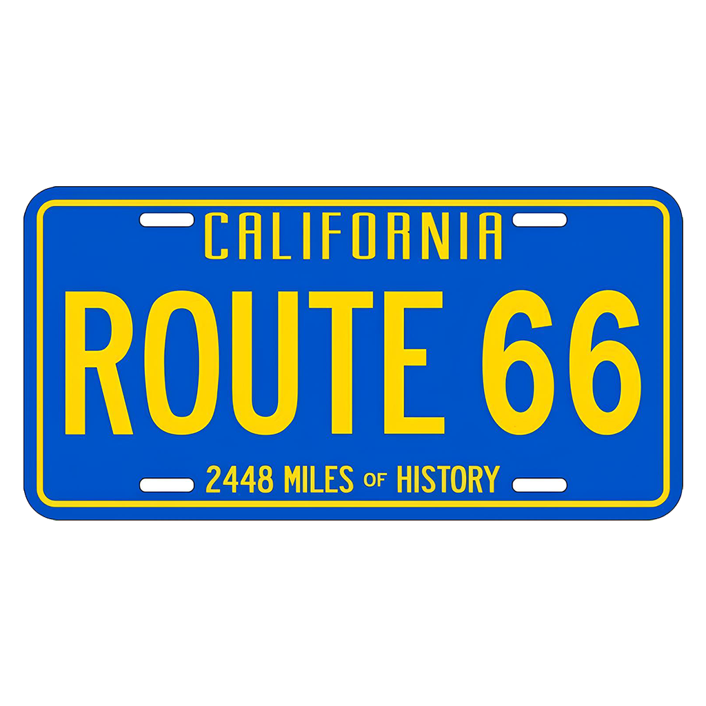 66 CA Blue & Yellow - Rev up your ride with our unique license plates—where personality meets the pavement! Each sign is crafted with care and high-quality materials, ensuring they're as durable as they are delightful. These American-made license plates are sure to ignite conversations and reflect your unique flair. Plus, you can proudly say, “Made in the USA!” with every sign! Category: Route 66