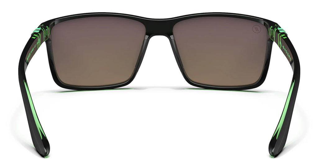 Just like you, ’Alpine Moon’ is ready for anything. Part of ‘Mesa’ collection, it has a mountainous reputation for excelling in the elements. The frame is tough as nails despite sporting a sleeker, thinner body than seen in our other active collections, and double-injection nose pads prevent slippage as you seek adventure. Vivid green polarized lenses boast 100% UVA & UVB protection, and as an added touch, the gloss black exterior is laced with lime on the interior for a fun twist on a durable mainstay.
