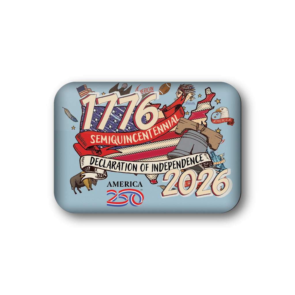 Experience Better Magnets® vivid colors and velvety soft feel with this 2.5-in x 3.5-in Rounded Corner Officially Licensed America250™ souvenir fridge magnet. The America250 word mark and logo are trademarks owned by the United States Semiquincentennial Commission and any use of such marks by Design Studio 88 Inc is under license. - Premium soft-touch matte finish - Vivid colors and velvety soft feel - Each magnet measures 2.5-in x 3.5-in - Rounded corners don’t dent - Makes for a great gift or memento - Made in USA