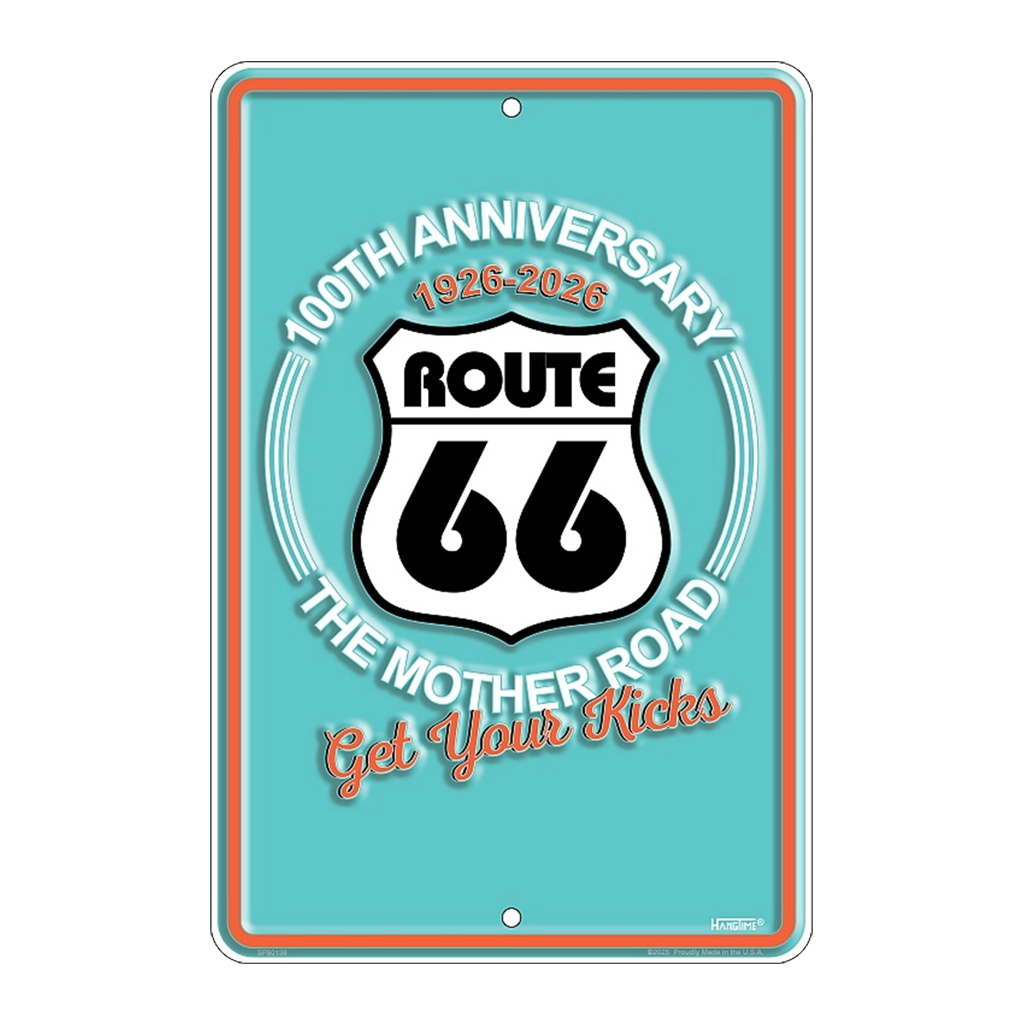Celebrating 100 years of adventure! Get your kicks on the mother road with this classic parking sign. Proudly made in the USA!